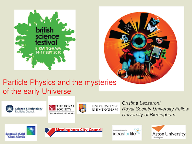 The Particle-Physics Group organised the event Particle physics and the mysteries of the early Universe for the 2010 British Science Festival, held in Birmingham during the week 14-19 September.