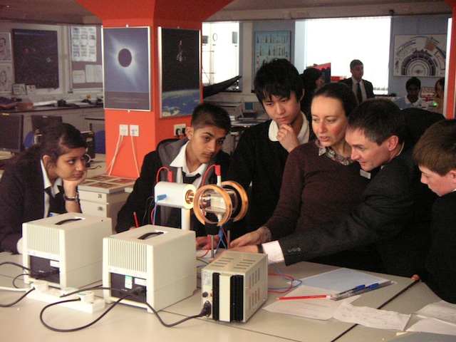 Cristina and Deirdre each made a series of visits to their local school, to talk with students about physics, particle physics and the LHC, and to help them plan and carry out their experiments. These were to understand electron diffraction in the case of Yardleys School, and to measure the charge-to-mass ratio of the electron in the case of the Netherhall School. These activities were complemented by two one-day workshops, attended by students from both schools.